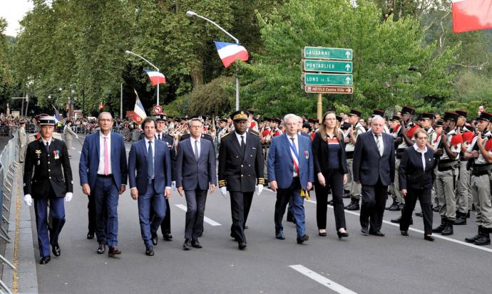 19h45, avenue d’Helvétie à Besançon. Une foule compacte de plusieurs centaines de personnes se presse pour assister au défilé du 14 juillet, où de nombreux corps d’État sont honorés par une marche triomphale et solennelle. Militaires des bataillons ou unités spécialisées, gendarmes, sapeurs-pompiers, douanes, anciens combattants, ou encore policiers municipaux, animent une cérémonie entre prises d’armes, remises de distinctions, et parades à pied ou motorisées.