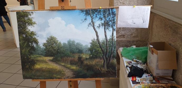 En France depuis février 2018, il déjà réalisé une quarantaine de tableaux d’inspiration comtoise, ou des environs de Besançon. Peindre chez nous a été, dit-il, une deuxième naissance de peintre. Tout est à redécouvrir. Il doit même inventer une nouvelle technique de travail. Il trouve cela passionnant.