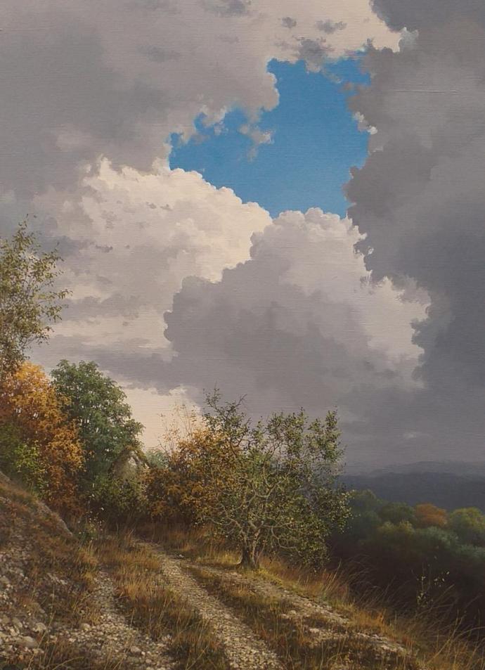 Ici, dit-il, les paysages sont différents de ceux de la Biélorussie. La lumière est différente. Les reliefs sont différents. Les arbres sont différents. Les hêtres biélorusses ne sont pas semblables aux hêtres qu’il a trouvés ici. Il a dû se procurer un livre sur les arbres… Les couleurs des tubes de peinture ne sont pas les mêmes.